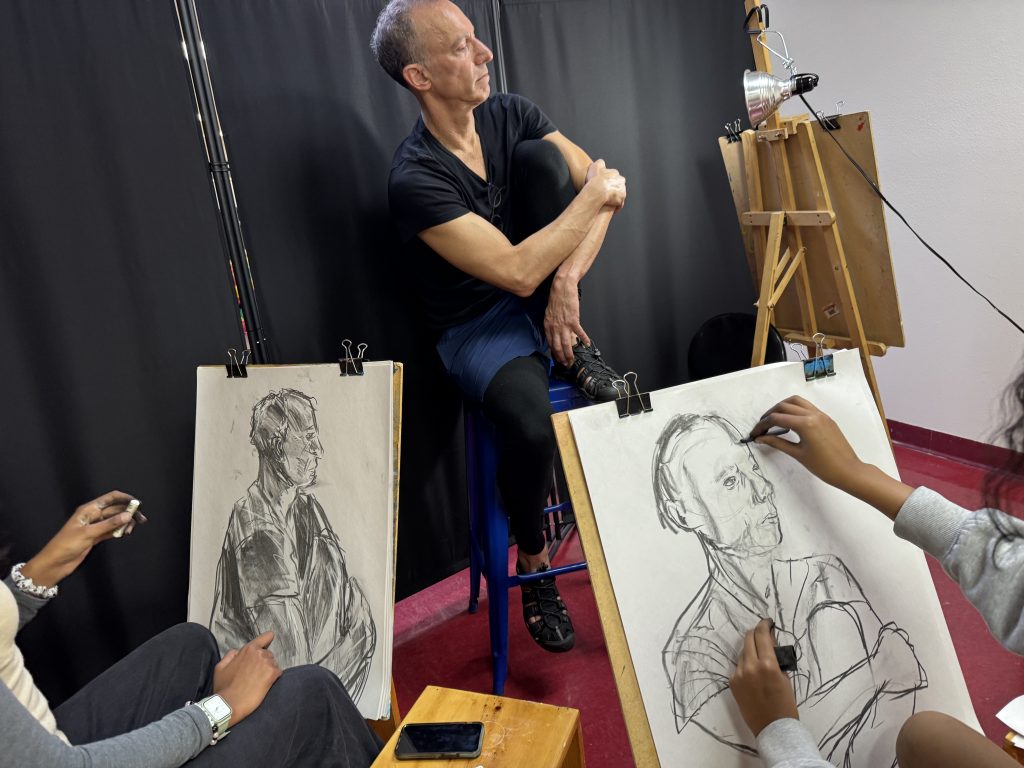 Students who would like to develop a strong art portfolio are required to complete prerequisite art classes before being accepted into the AP Art Program, which prepares them for college-level portfolio work. One of the most essential practices in this process is figure drawing. Through consistent practice, students learn to understand and apply the fundamentals of line, shape, and form by drawing from real life. This practice not only strengthens technical skills but also encourages personal expression. Over time, figure drawing becomes a foundational element in students’ artistic development and serves as an important area of investigation, contributing to the depth and breadth of their overall portfolio.